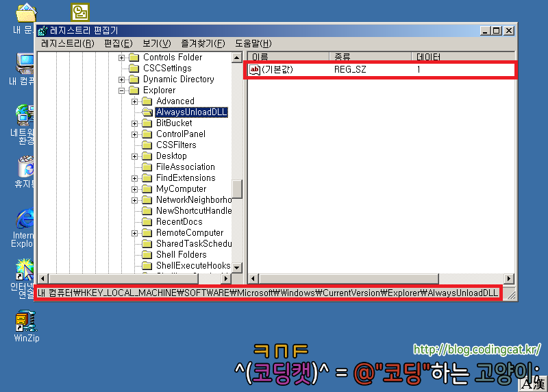 그리고 이 키의 기본값을 1로 설정합니다. Windows 9x의 경우 이것이 여러분이 할 수 있는 최선입니다.